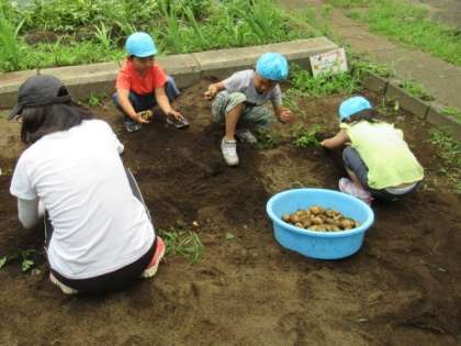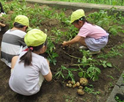 昨日に引き続き、年長ほし組さんが、ジャガイモほりをしました。今日もたくさん収穫できました。