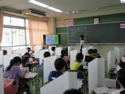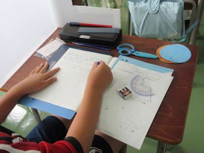今日の4年生の算数は、分度器を使って角度を測る学習をしていました。