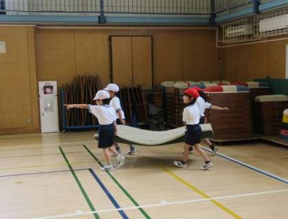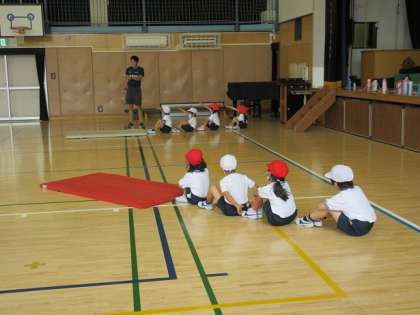 マットを友達と協力して運んだり、マットを置いたら体育座りで待っていたりと、体育の約束がよく守れていました。