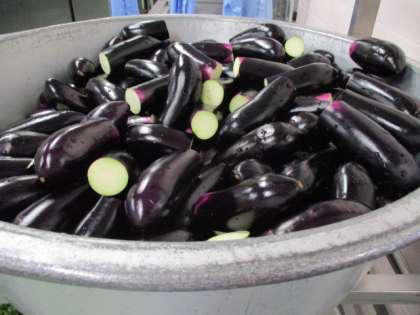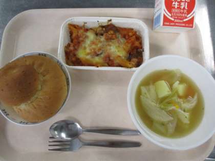 今日の朝、給食室に届いた新鮮ななすを使ってグラタンをつくりました。ミートソースにはレンズ豆も入れて栄養をアップしました。じっくり煮込んだミートソースと一緒に今が旬のなすをおいしく食べてもらいたいと思います。