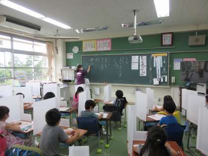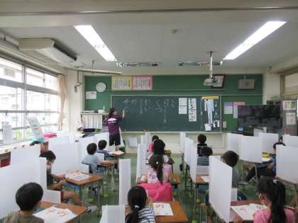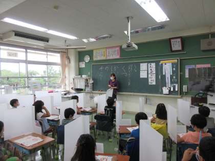 1年生の教室では、ひらがなの「そ」を書く学習をしていました。