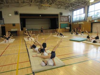体育の授業は、どの学年も、マットや跳び箱の器械運動系や、校庭では、短距離走やハードル走などの、個人種目型の学習となっています。