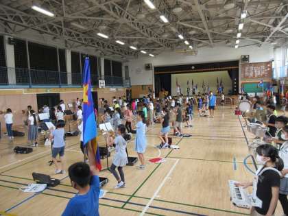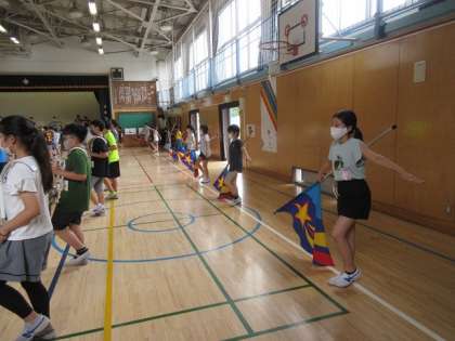 今日は、初めて、フラッグも含め、全員で合わせていました。行進を意識して、その場での足踏みをしながらでしたが、初めてとは思えない出来栄えでした。