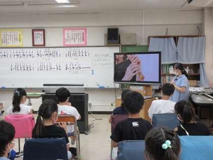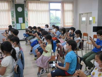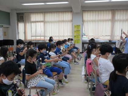 砧小ではこの機会に、リコーダーで石井戸囃子を習います。今年度は、喜多見地区祭りでの発表はありませんが、石井戸の皆さんのレクチャーも2学期にはお願いをする予定です。発表する機会も設けたいと考えています。