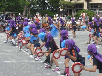3年生の表現は、4年生といっしょにエイサーを踊りました。朝練習にも進んで参加しダイナミックな踊りにしようと頑張りました。本番の運動会では、元気一杯、エイサーを踊ることができました。