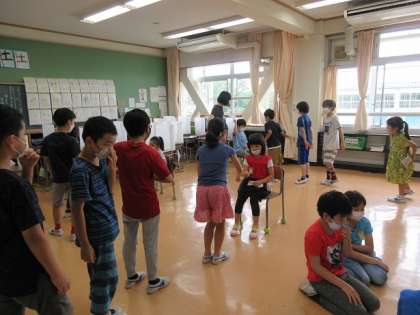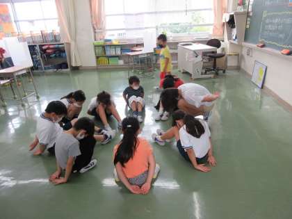 班で遊んでいるグループがほとんどで、外のグループ同様、6年生が低学年の面倒をよく見ているので、感心させられます。
