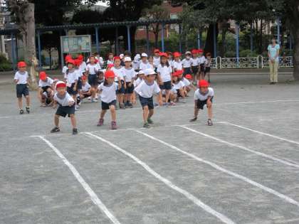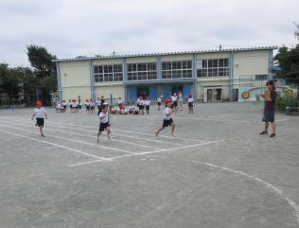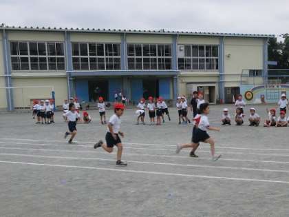 校庭の真ん中を、1年生が疾走していました。