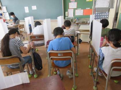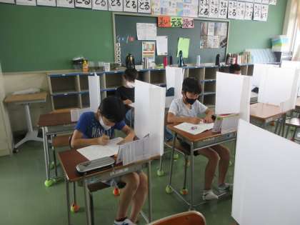 高学年は、担任の先生が準備してくれているプリント集で学習すすめている子が多いですね。各教科揃っているので、学習のはじまりの時間は、後姿からも、集中していることがわかります。