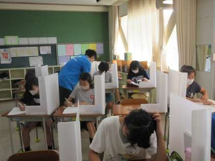 2回の休憩時間を除くと、約2時間の学習時間です。この2回の休憩時間が程よい気分転換になり、教室へ戻ってくると、すんなり学習体制に入れるようです。