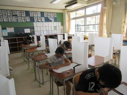 登校して来ている児童は、半数を欠けるぐらいでしょうか。8月当初同様、朝一番の時間帯でしたので、集中力も高い時間でした。