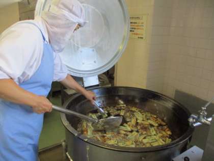 かつおだしのつゆもとてもおいしくできました。写真はちくわの磯辺揚げを揚げているところです。900本近く揚げました。
