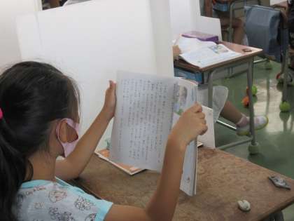 昨年度から教科書を使うようになり、お話を読むだけではなく、その中から、自分ならどうするかを考えたり、発表したりしています。