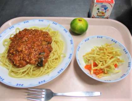 今日のミートソースには秋になっておいしくなったナスがたっぷり入っています。