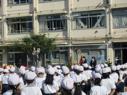 気持ちのよい朝をむかえ、児童朝会を行いました。