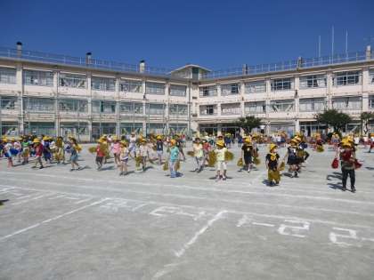 キラキラと色とりどりのポンポンをもち、元気な音楽に乗せ、力いっぱい踊っています。