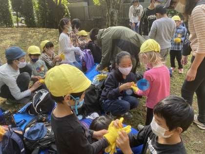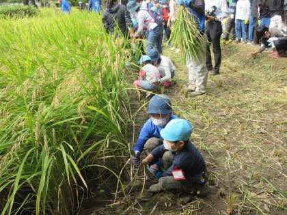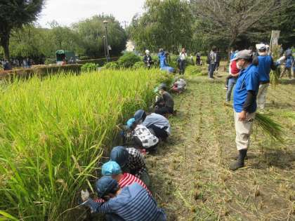 よく実った稲を、砧幼稚園の年長さんと一緒に収穫をしました。