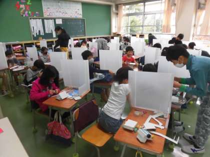 今日は6年生が作り方を丁寧に説明してくれ、一人ひとり自分のおもちゃを作ることができました。