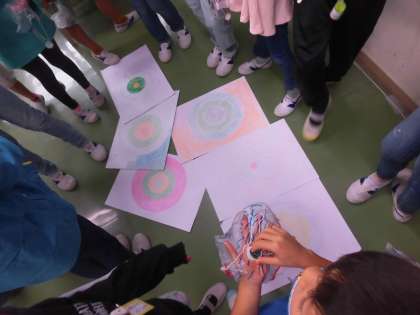 紙コップけん玉やあき箱ほかけ車、ブンブンごま等、班によってつくるおもちゃは様々ですが、子供達はどの遊びも夢中になって遊んでいました。