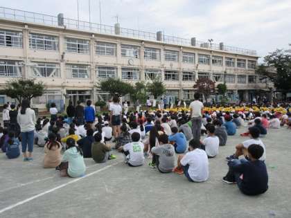 今朝の集会は、5・6年生が活動している委員会の紹介でした。