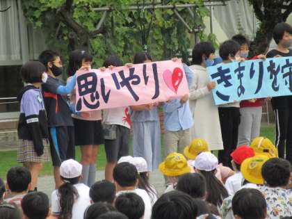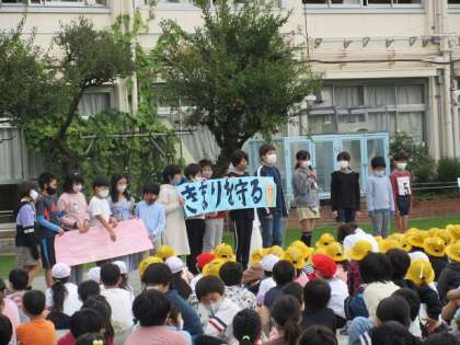 代表委員会から、全校で楽しくすごしていくための目標が示されました。