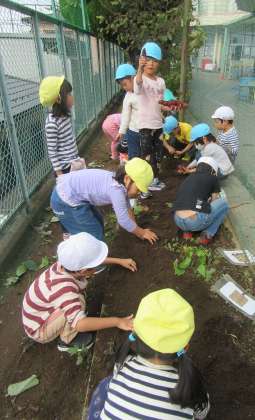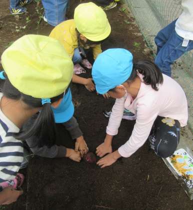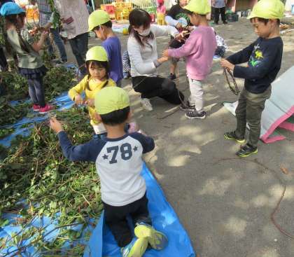 年長組は、幼稚園の畑の芋ほりをしました。その後、芋づるでリース作り。飾り付けが楽しみですね。