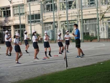 今朝は、リレーの練習をしていました。1人100mを走りきることと、バトンパスの成功がめあてです。