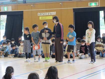 今日は、4年生が昨年の経験をもとに、お囃子を演奏してくれました。4年生の「続けてほしい、よろしく」の願いが伝わってきました。