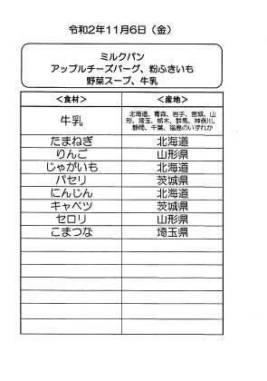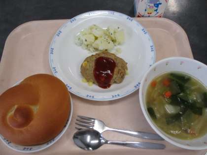 子ども達の大好きなハンバーグに、チーズとりんごのくわわりりました。