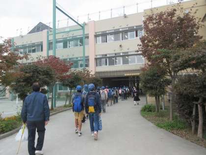 6年生は、砧中・砧南中に分かれ、中学校の見学に行きました。