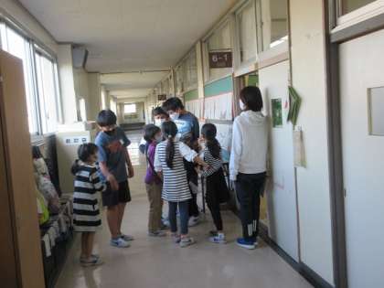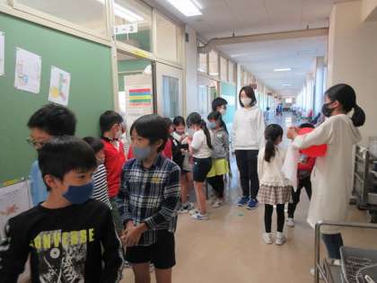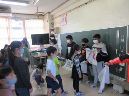 1年生の教室には、迎えに来た6年生や5年生がいました。
