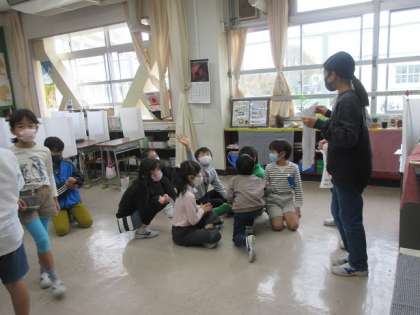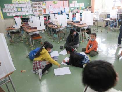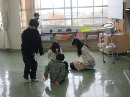 前回外遊びをしたグループは、今日は教室で遊びます。