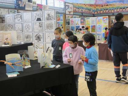 3・4年生は年齢が近いせいか、なかよし二人組で、作品を楽しんでいる雰囲気でした。お互いの優しが伝わってくるようで、暖かな心持ちでした。