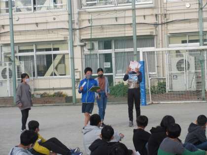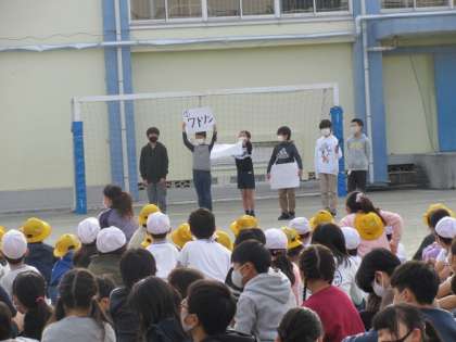校庭での発表場所を工夫したり、劇のように発表したりと、読書への関心を高めようとする図書委員の気持ちが伝わってきました。