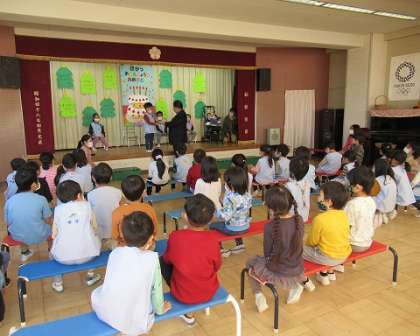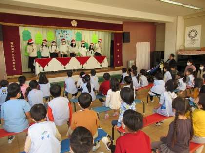 今日は、12月の誕生会でした。“12月のお楽しみ”は、うたう会の同好会の皆様による、ハンドベルでした。美しい音色にうっとり。「ハンドベル、やってみたい!」の声もあがりました。うたう会の皆様、ありがとうございました。