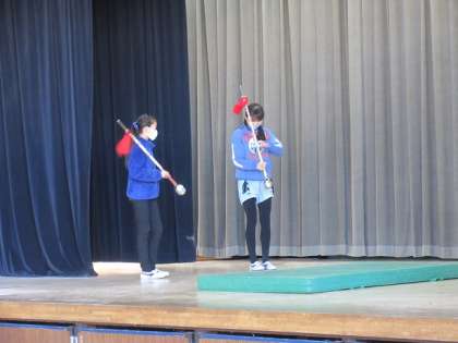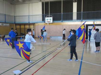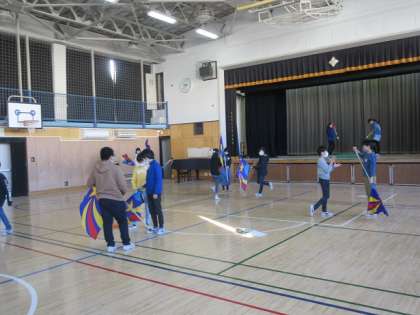 体育館では、フラッグ隊とメジャーの担当が、手ほどきをしました。
