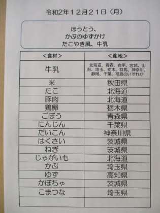 今日は冬至なので、給食ではかぼちゃとゆずを使った冬至献立にしました。