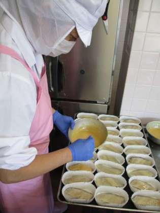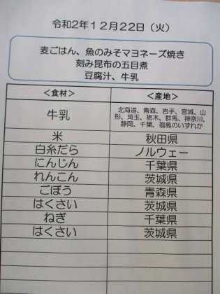 魚の味噌マヨネーズ焼きはとても人気のある献立です。刻み昆布の五目煮には、れんこん、ごぼう、にんじん、しいたけ、こんぶ、ごま、さつまあげ、だいずがはいっていて、栄養満点の副菜です。見た目で苦手な子も多かったようですが、ごはんと食べるとおいしかったという感想も聞かれました。写真は魚の味噌マヨネーズ焼きを作っているところです。