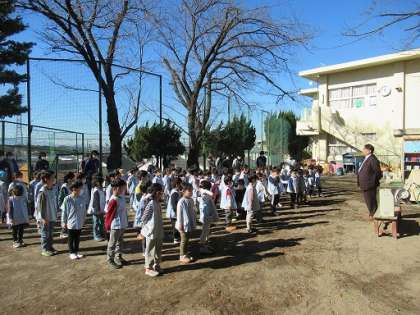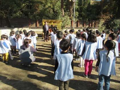 今日は、2学期の終業式でした。園長先生のお話をしっかり聞くことができました。