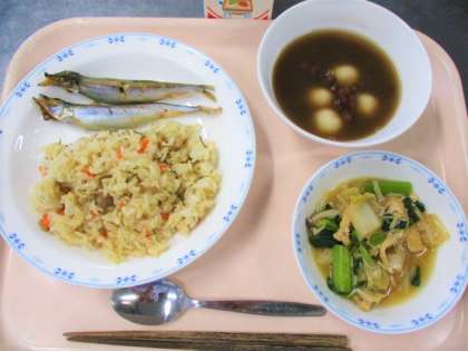 1月11日は鏡開きでした。おうちで鏡開きをしてお汁粉を食べた人も多かったのではないでしょうか。鏡開きの日は休日で学校がなかったので、1月の行事食として今日お汁粉を作りました。あずきから丁寧に作った給食のお汁粉はとてもおいしくできました。