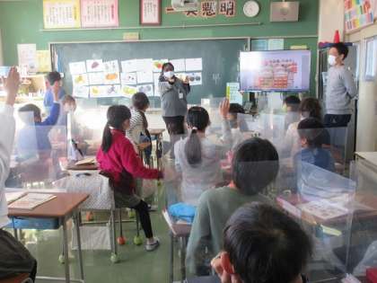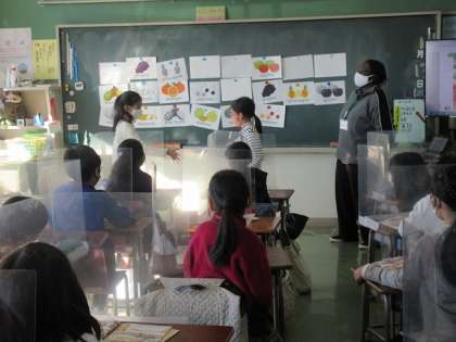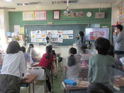 4年1組では、ALTのジョアン先生との英語活動の時間が行われていました。