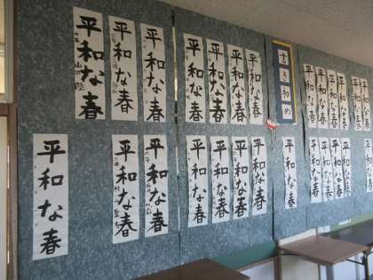 6年生は最後の「春」がとても難しいです。横画の多い時は、どうしても文字が縦に長くなりがちです。横に上手に広がると、バランスが取れるようになります。
