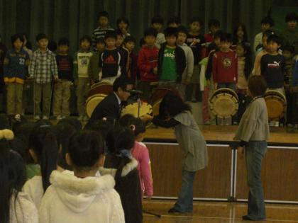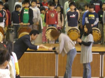 保護者の皆様と地域の皆様のお力で集めてくださったベルマークで締太1台をいただきました。PTAのベルマーク担当のお母さんから校長先生が受け取りました。(全校朝会にて)ありがとうございました。3年生が学ぶ石井戸ばやしの学習に使わせていただきます。また、財団法人ベルマーク教育助成財団から、砧小学校のこれまでの活動に対して感謝状をいただきました。これからもベルマーク集めにご協力ください。よろしくお願いいたします。