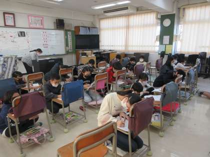 音楽室には机を置いていないので、椅子を机代わりにしていました。