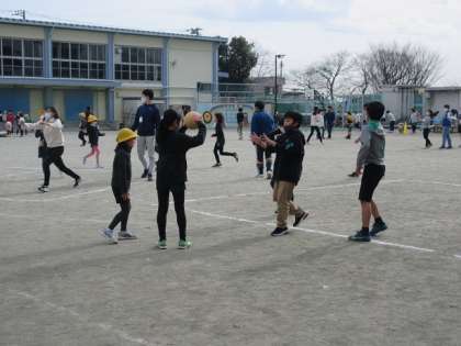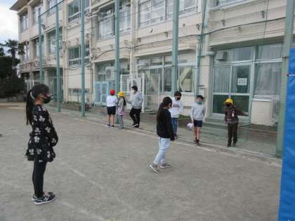 外遊びを回ってみると、おに遊びやボール遊びに交じって、縄を使っている班もありました。元気に走り回っている子ども達ばかりです。