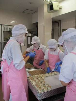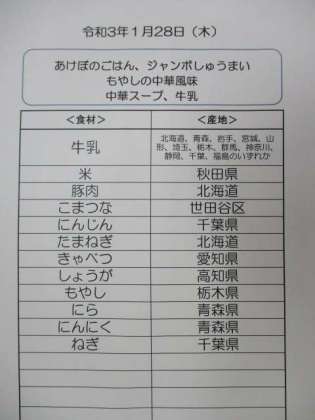 今日は大きな特製のしゅうまいの皮でジャンボしゅうまいを作りました。こどもたちは朝から楽しみにしてくれていました。あけぼのごはんはすりおろしたにんじんをごはんに炊き込んだご飯です。ほんのりとしたオレンジ色からあけぼのごはんという名前がつきました。写真はジャンボしゅうまいを作っているところです。