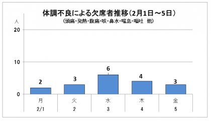 ◎2月の体調不良による欠席者推移は上のグラフをご参照下さい