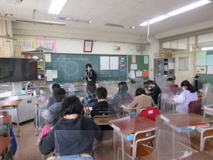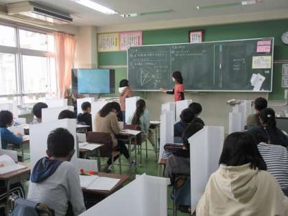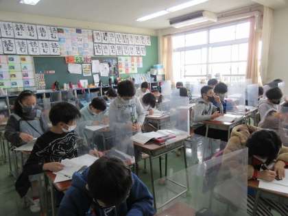 算数の時間は、クラスを一クラスふやして学習しています。5年生は2クラスなので、3つのグループに分かれて学習しています。今日は、図形の学習をしていました。
