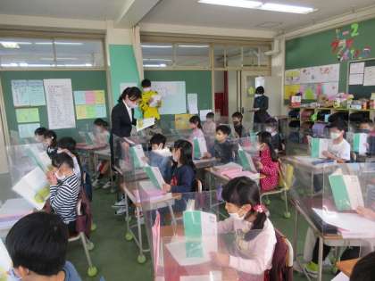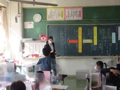 若手教員研修授業です。「動物の赤ちゃん」という単元で、ライオンとシマウマの成長の様子を比較する学習でした。一生懸命感がている姿が素敵ですね。