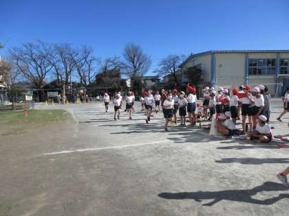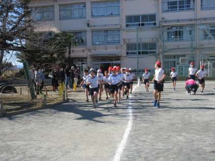5年生は、自分の時だけでなく、友達が走っているときにも、伴走をしながら声をかけています。記録の伸びや走り方の伸長を仲間共に喜んでいました。