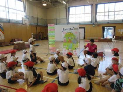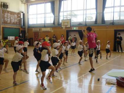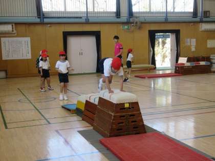 全校の先生方が見守る中でしたが、跳び箱や舞台に飛び乗ったり、跳び下りたり、力いいっぱい体を動かしました。